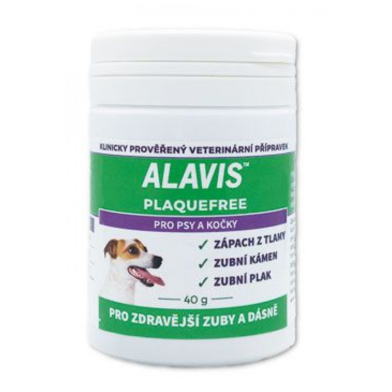 Pro odstranění a prevenci vzniku zubního kamene, zubního plaku a zápachu z tlamy zvířete přidejte ALAVIS PlaqueFree jedenkrát denně do krmení. Výsledky se objeví obvykle za 3-8 týdnů.