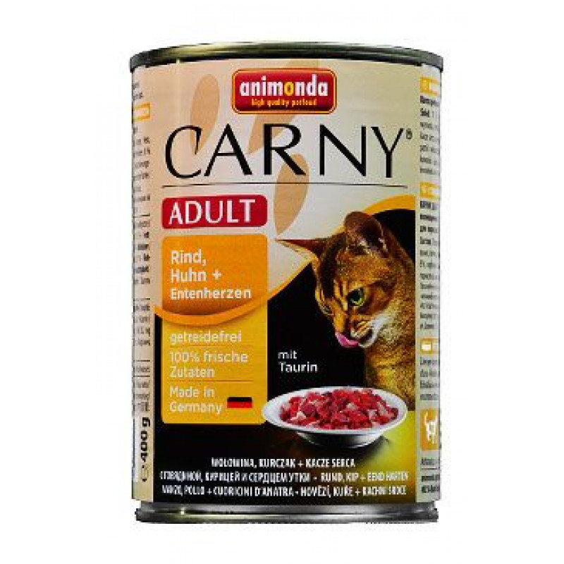 Konzervy Animonda Carny Adult jsou vyrobeny výhradně z čerstvého masa. Obsahují speciální kombinaci antioxidantů, které chrání imunitní systém koček a posilují jejich obranyschopnost. Animonda Carny Adult je vyvážené krmivo, které je přizpůsobeno požadavkům dospělých koček. Bez barviv a umělých konzervantů.
