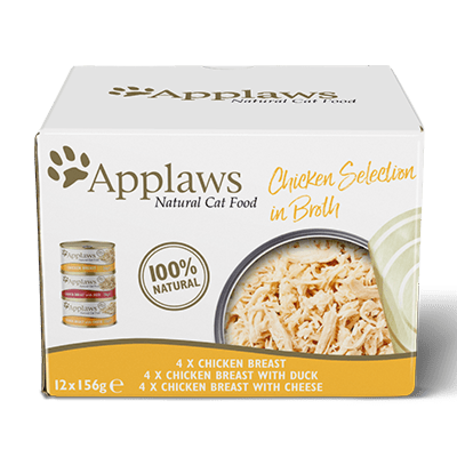 Applaws konzervy Multipack Kuřecí výběr ve zvýhodněném balení 12x156g. Vyzkoušejte různé varianty s kuřecím masem ve vlastím vývaru. Nech svoji kočičku vybrat své oblíbené kombinace. Doplňkové krmivo pro dospělé kočky pouze z přírodních surovin. Konzervy Applaws pro kočky obsahují pouze uvedené suroviny! Žádné náhražky a imitace masových kousků.