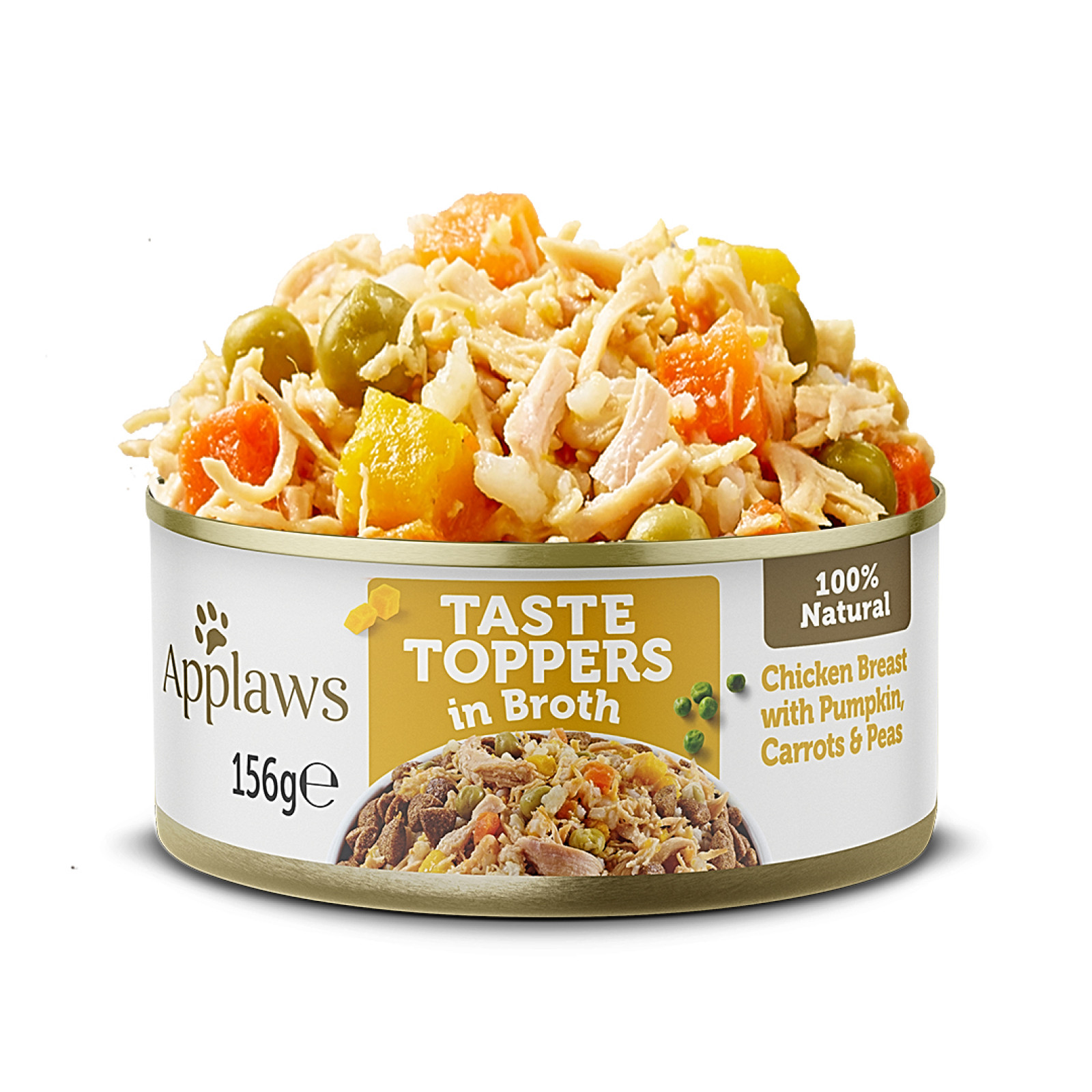 Applaws Taste Toppers Kuřecí prsa se zeleninou ve vývaru už znáte. Nový obal, stejná špičková kvalita. Applaws konzerva Dog Kuřecí prsa se zeleninou je plná kousků masa z kuřecích prsou a lahůdkové zeleniny v chutném kuřecím vývaru. Doplňkové krmivo pro dospělé psy pouze z přírodních surovin. Konzervy Applaws pro psy obsahují pouze čisté maso v celých kouscích! Žádné náhražky a imitace masa.
