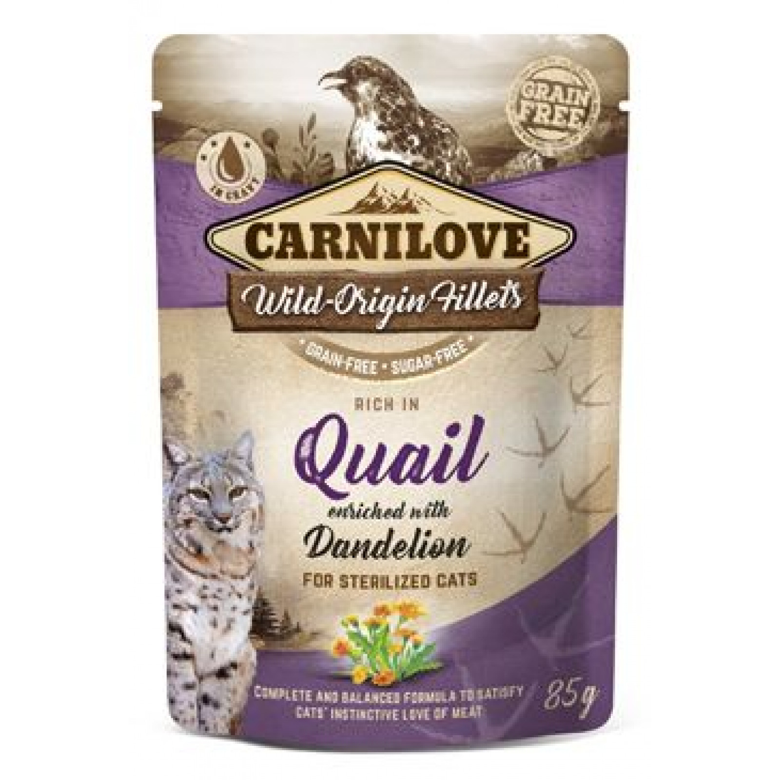 S vysokým obsahem křepelčího masa s pampeliškou. Kapsička s kousky masa divokého původu ve filetech. Kompletní krmivo nebo chutný topping ke granulím.