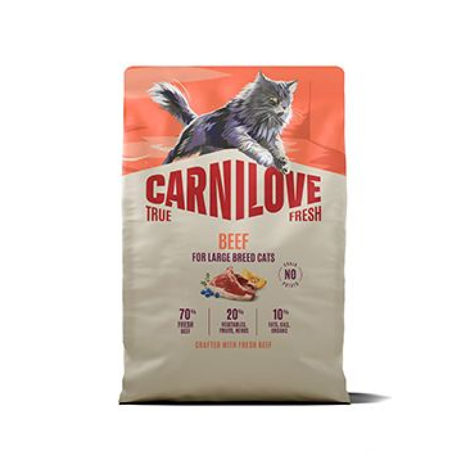 Tato receptura s čerstvým hovězím masem je ideální pro dospělé kočky velkých plemen a plně respektuje jejich přirozené výživové potřeby. Snadno stravitelné bílkoviny podporují silné svaly a celkovou kondici, zatímco dýně a luštěniny napomáhají trávení. Rakytník řešetlákový, brusinky a borůvky posilují přirozenou obranyschopnost, lososový olej a lněné semínko udržují kůži pružnou a srst hustou a lesklou, a přírodní zdroje glukosaminu a chondroitinu podporujízdravé klouby. Kompletní krmivo pro dospělé kočky velkých plemen.