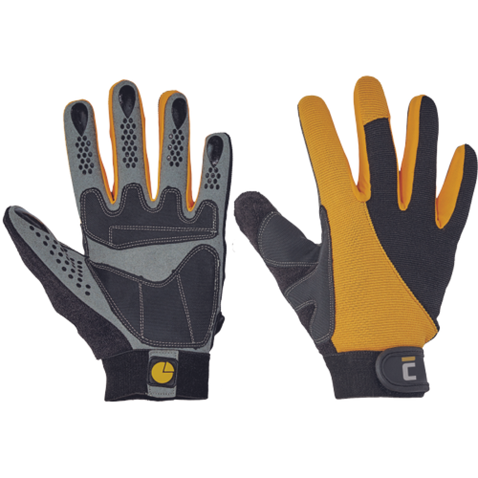 Materiál umělé kůže dlaně a zesílená úchopová část poskytují dobrou ochranu a pevnost.