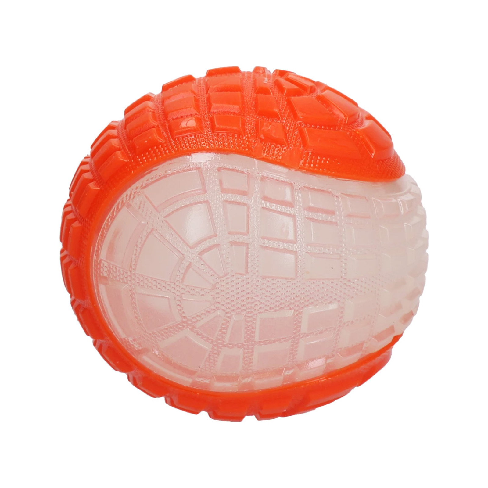 Průhledná část míčku svítí ve tmě, díky čemuž je míček dobře viditelný. Vodomilové budou mít také velkou radost, perfektně plave na vodě a skvěle skáče. Pískadlo ukryté uvnitř míčku poskytuje extra stimulaci při hraní. Jemné výstupky na míčku zlepšují jeho držení v tlamičce i v rukách, i když je míček vlhký.