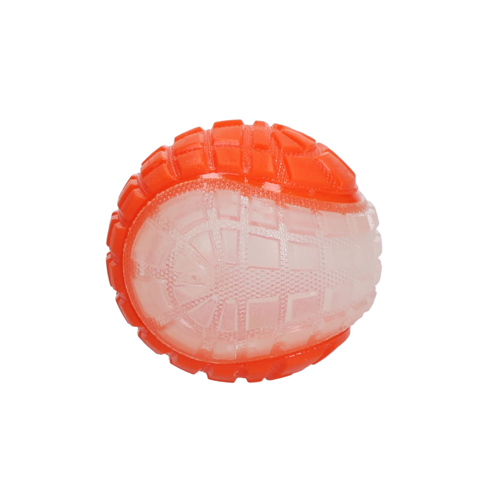 Průhledná část míčku svítí ve tmě, díky čemuž je míček dobře viditelný. Vodomilové budou mít také velkou radost, perfektně plave na vodě a skvěle skáče. Pískadlo ukryté uvnitř míčku poskytuje extra stimulaci při hraní. Jemné výstupky na míčku zlepšují jeho držení v tlamičce i v rukách, i když je míček vlhký.