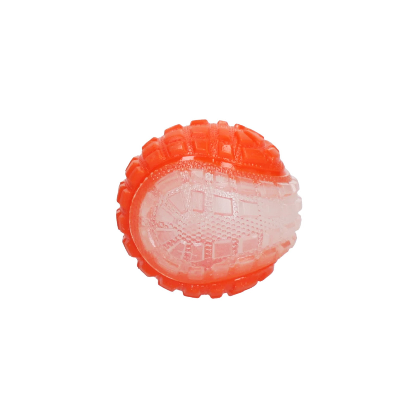 Průhledná část míčku svítí ve tmě, díky čemuž je míček dobře viditelný. Vodomilové budou mít také velkou radost, perfektně plave na vodě a skvěle skáče. Pískadlo ukryté uvnitř míčku poskytuje extra stimulaci při hraní. Jemné výstupky na míčku zlepšují jeho držení v tlamičce i v rukách, i když je míček vlhký.