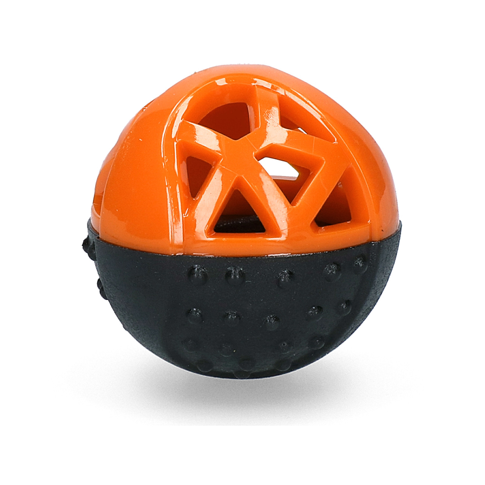 Míč m á jednu polovinu děrovanou z elastické pryže a druhou polovinu z pevného termoplastického materiálu. Měkký a odolný materiál děrované části usnadňuje psovi chycení míčku a vám umožňuje vložit dovnitř pamlsky. Jejich vytahování ze středu míčku je intelektuální stimulací a dobrou zábavou pro psa. Míč můžete samozřejmě použít i ke hře bez náplně k aportování. Moonstone je odolný, ale zároveň šetrný k psí tlamě.