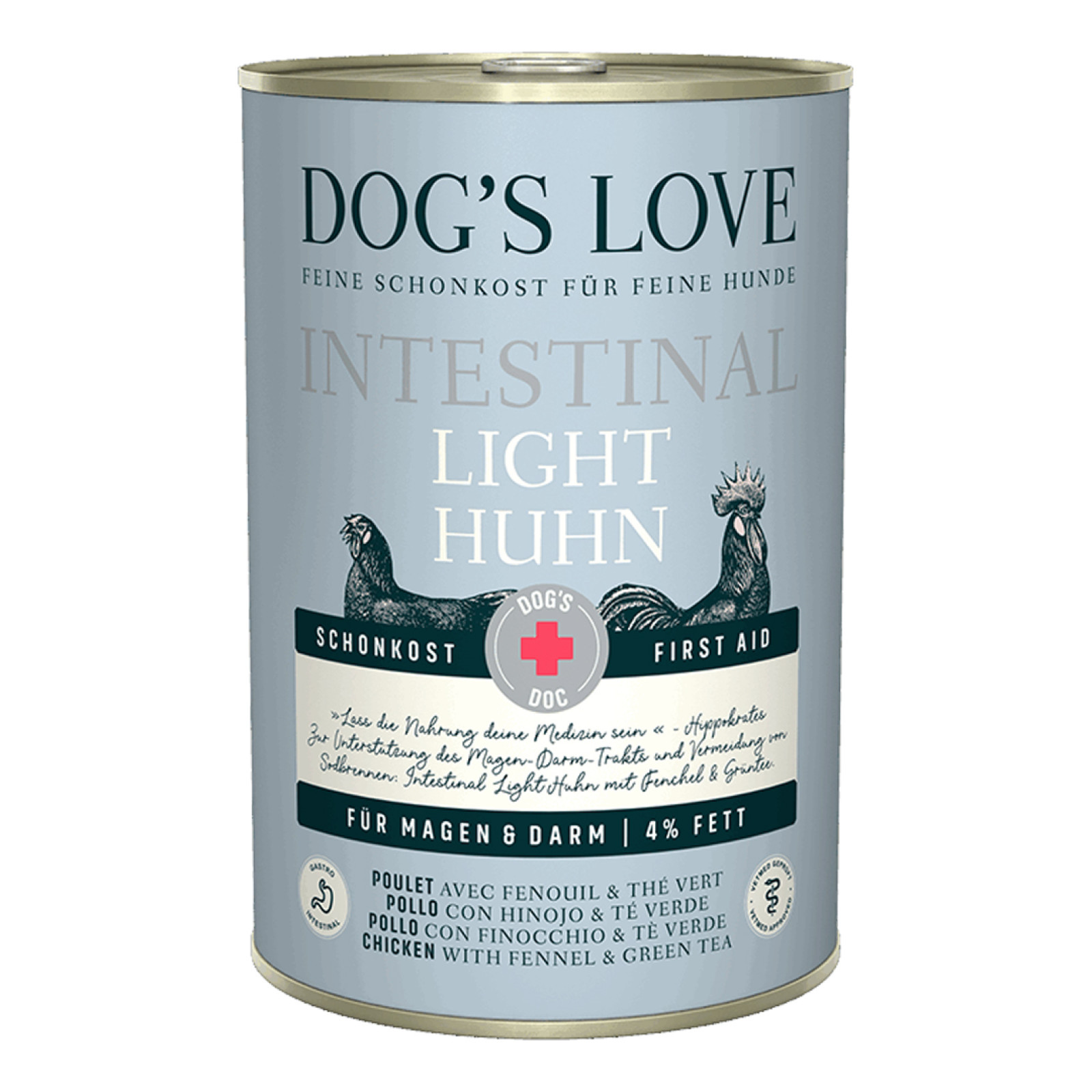 Řada konzerv Dog's Love DOC je určena pro speciální potřeby psů na výživu. Bezlepkové kompletní konzervované krmivo pro dospělé psy všech plemen z kuřecího masa a kuřecích vnitřností DOC Light Intestinal je koncipováno jako nízkotučné kompletní konzervované krmivo pro dospělé psy všech plemen.