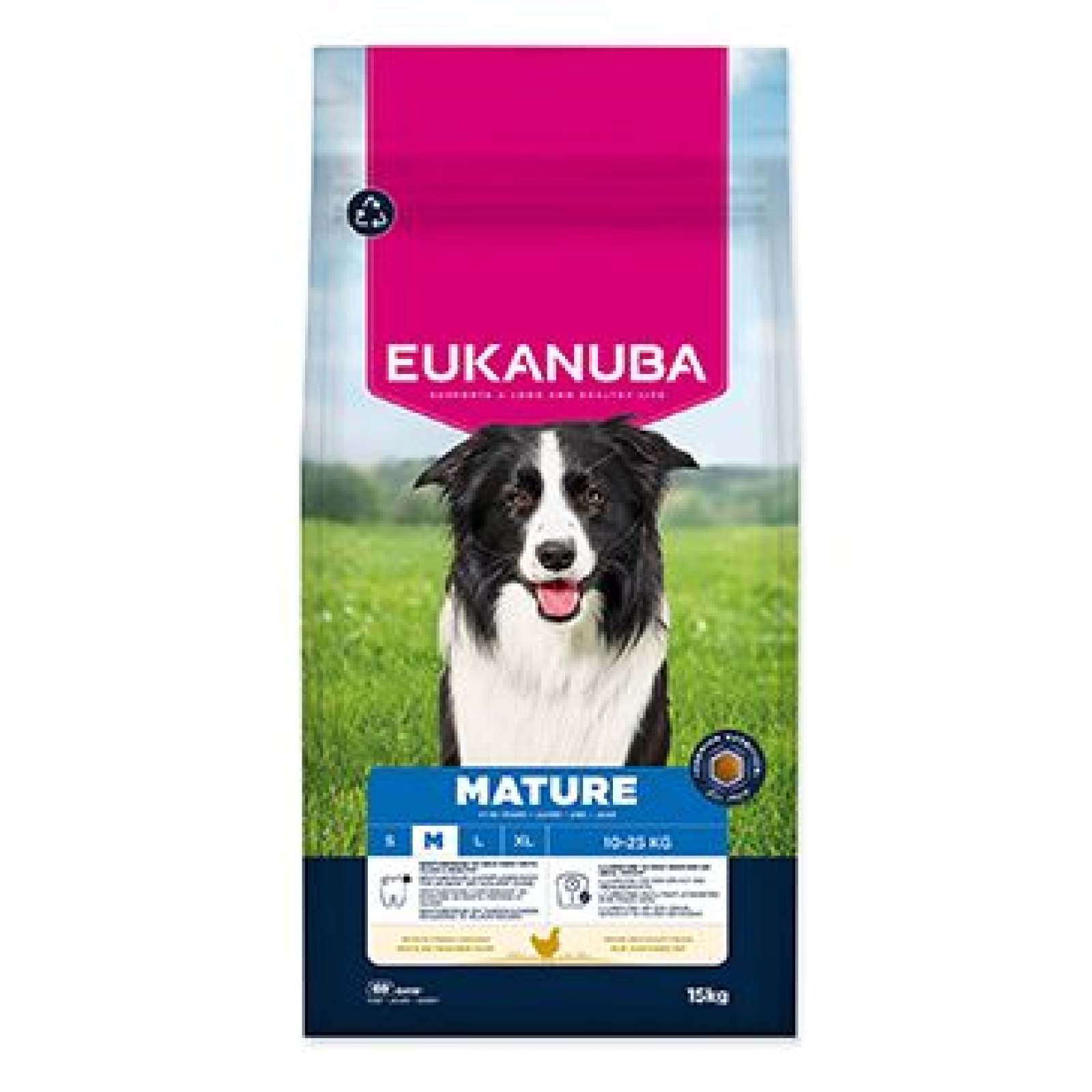 EUKANUBA Life Care nabízí vědecky podloženou prémiovou výživu, která je pečlivě sestavena tak, aby splňovala měnící se potřeby psů v každé fázi života. Toto suché krmivo s čerstvým kuřecím masem je speciálně navrženo pro psí seniory středně velkých plemen od 7 do 10 let. Díky vybraným složkám poskytuje přizpůsobenou výživu na podporu zdravého stárnutí a celkové vitality. L-karnitin pomáhá spalovat tuky, čímž přispívá k udržení optimální hmotnosti a snížení zátěže kloubů. Přizpůsobená směs vlákniny s prebiotiky, fruktooligosacharidy a řepnou dužinou podporuje zdravé trávení, zatímco glukosamin udržuje zdravé klouby a vápník silné kosti. Přírodní zdroje omega-6 a omega-3 mastných kyselin podporují zdravou kůži a lesklou srst, zatímco směs antioxidantů s vitamínem E posiluje imunitní systém psa. Jedinečné šestihranné granule EUKANUBA v kombinaci se systémem dentální péče DentaDefense navíc pomáhají dlouhodobě udržovat čisté a zdravé zuby. Toto 100% kompletní a vyvážené krmivo poskytuje pokročilou výživu na podporu optimální tělesné kondice a celoživotní pohody psích seniorů středně velkých plemen. Společnost EUKANUBA poskytuje kvalitní krmivo pro každou fázi života vašeho psa.