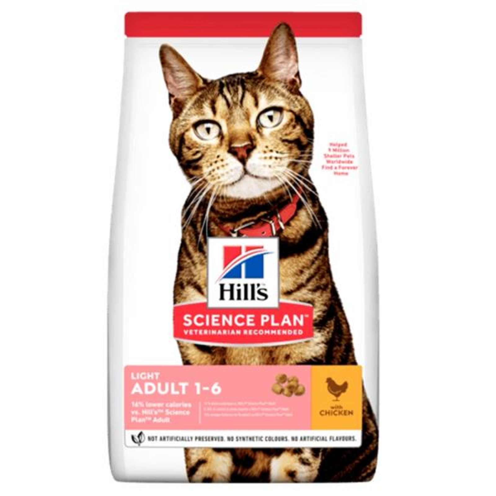 Hill''s Science Plan Light krmivo pro dospělé kočky (ve věku 1–6 let), které potřebují méně kalorií (tj. kočky méně aktivní, kastrované nebo jinak náchylné k nadváze).