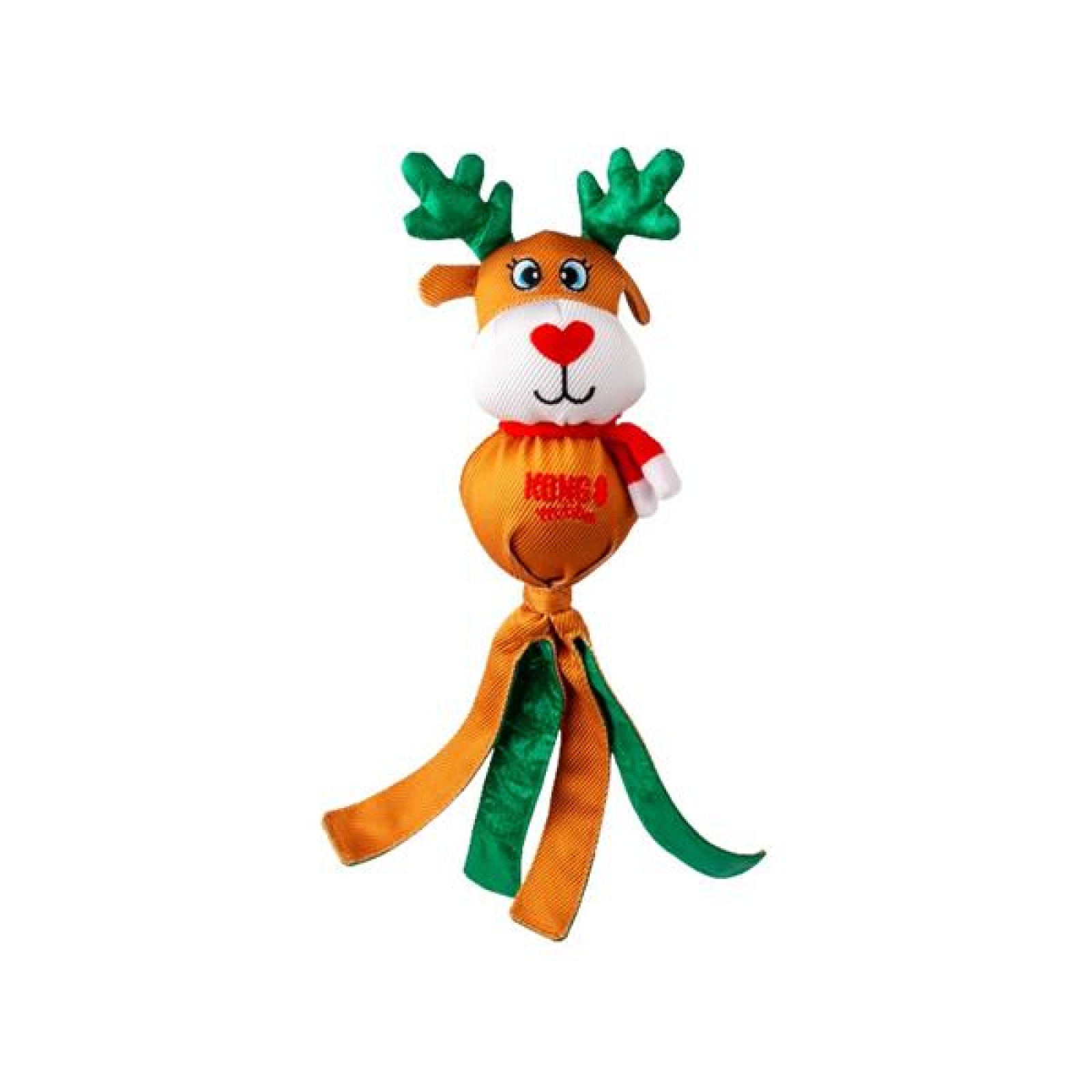 Hračka KONG Holiday Wubba v podobě soba, tučňáka nebo Santy s dlouhým plandavým ohonem dělá aportování, přetahování i lomcování o tolik zábavnější! Vzrušení ze hry ještě zvyšují různorodé textury a pískátko zabudované v hlavě hračky.