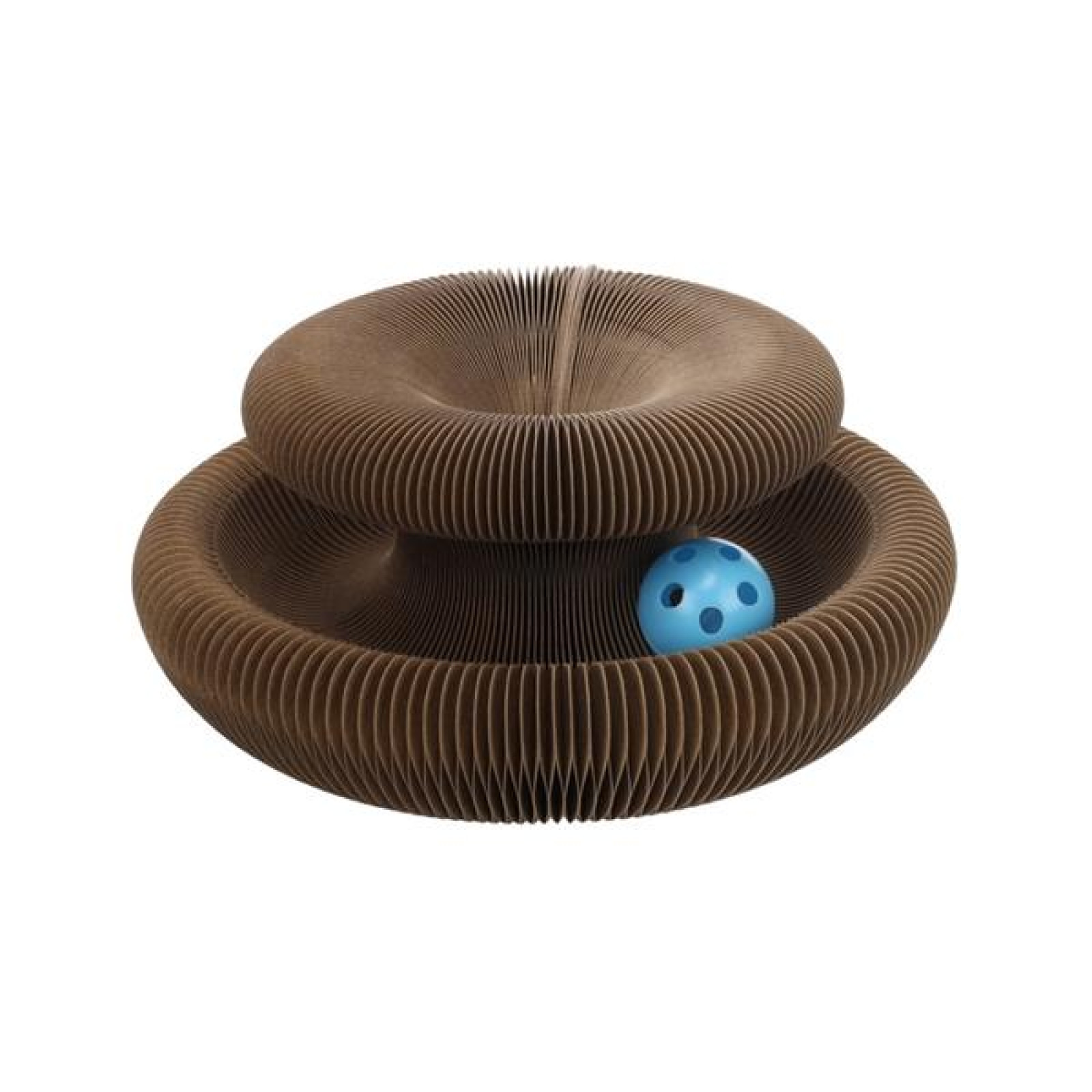 Skládací papírové škrabadlo Flamingo Kava pro kočky je vyrobeno z kvalitního recyklovatelného vlnitého kartonu. Díky vynalézavé konstrukci a magnetickému zapínání lze snadno rozložit do tří různých tvarů. Složené zabírá jen málo místa, takže je ideální i jako cestovní škrabadlo. Součástí balení je cinkající kulička a sáček s catnipem (šantou kočičí), kterým lze škrabadlo posypat, aby bylo pro kočku ještě přitažlivější.