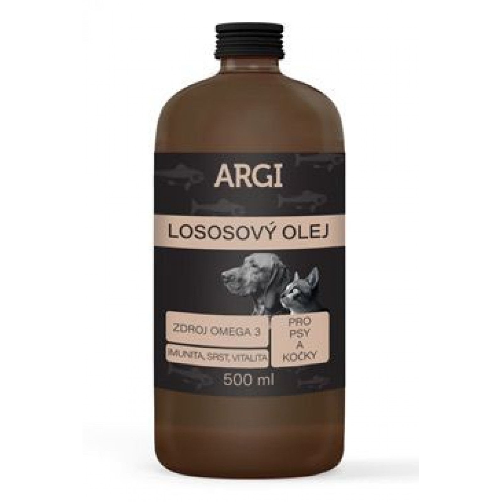 Lososový olej Natural má skvělý vliv na vzhled, zdraví a vitalitu psů a koček. Především ovlivňuje kvalitu a lesk srsti, zmírňuje projevy kožních alergií a je přirozeným zdrojem energie. Lososový olej Argi Natural je čistě přírodní produkt s přirozenou chutí a vůní, bez chemických dochucovadel či příměsi jiných druhů olejů. Jedná se o průmyslově neupravený, tedy nerafinovaný olej. Je pouze filtrovaný proto, aby si zachoval krásnou konzistenci. Díky své intenzivní vůni a chuti je lososový olej také vhodný jako dochucovadlo potravy. Můžete jej nalít do misky k těstovinám, granulím, masu či zelenině.
