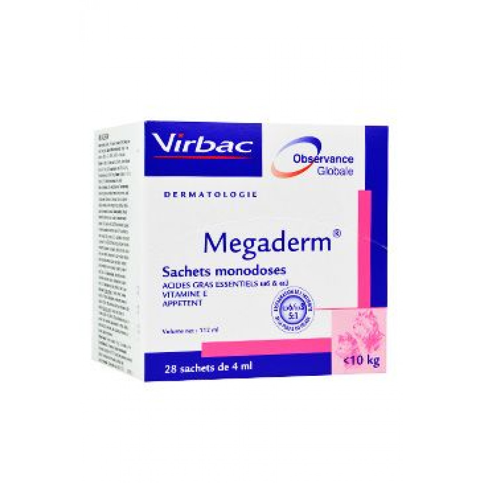 MEGADERM je potravní doplněk s obsahem esenciálních mastných kyselin (EFAs) náležejících do rodiny omega 6 (Ω6) a omega 3 (Ω3) v optimálních množstvích a poměrech (5:1). MEGADERM pomáhá při tlumení kožních poruch, zejména v případě alergií. Účinkuje na 2 úrovních, které se vzájemně doplňují: