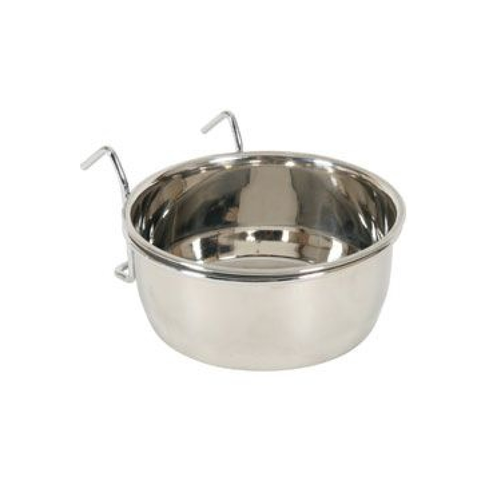 Nerezová miska s háčky pro ptáky, průměr 9cm.