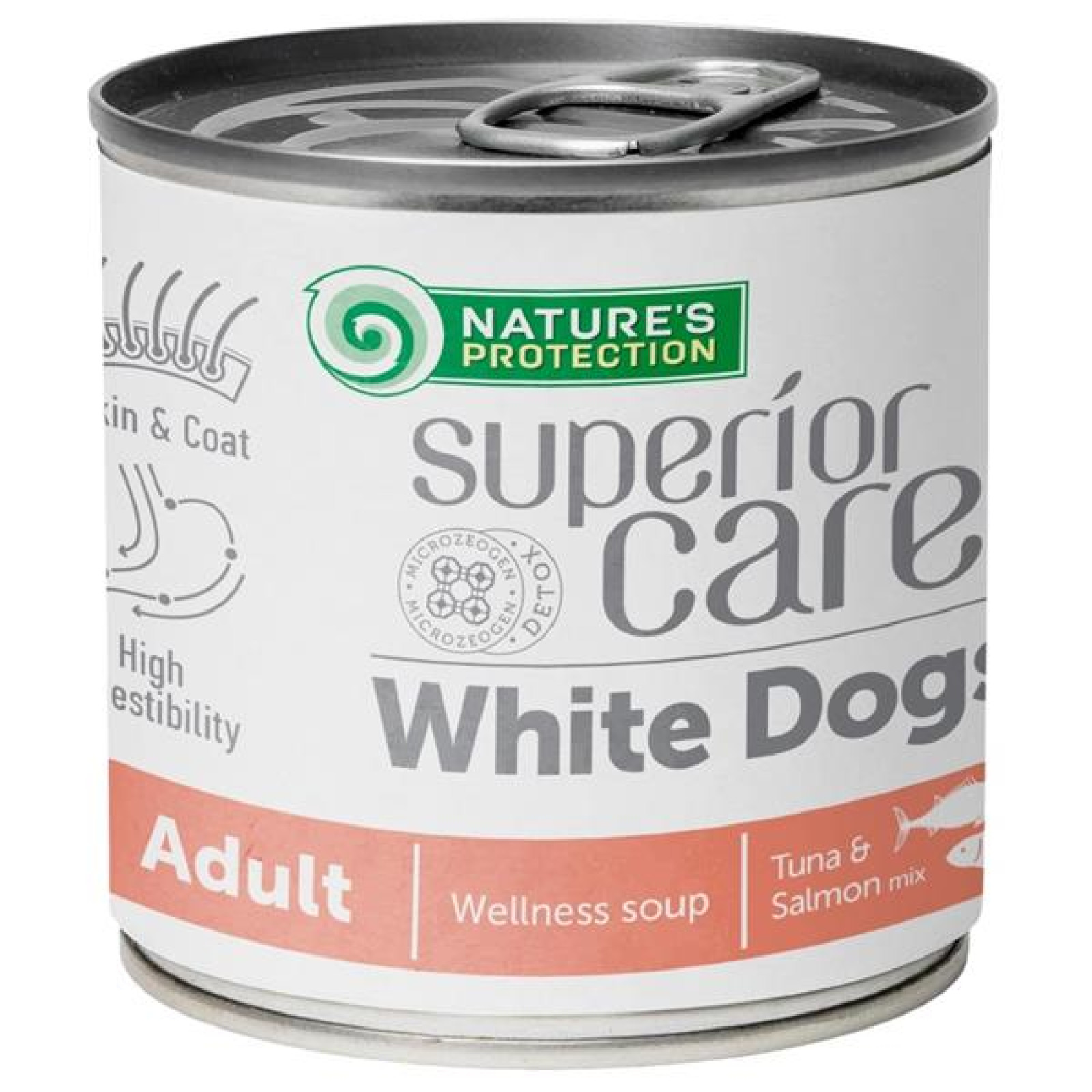 Polévka Nature´s Protection Superior Care je prémiový doplněk stravy s lososem a tuňákem, speciálně vyvinutý pro dospělé psy bílé a světlé srsti. Výrobek napomáhá udržet zdravou srst a kůži vašeho domácího mazlíčka.
