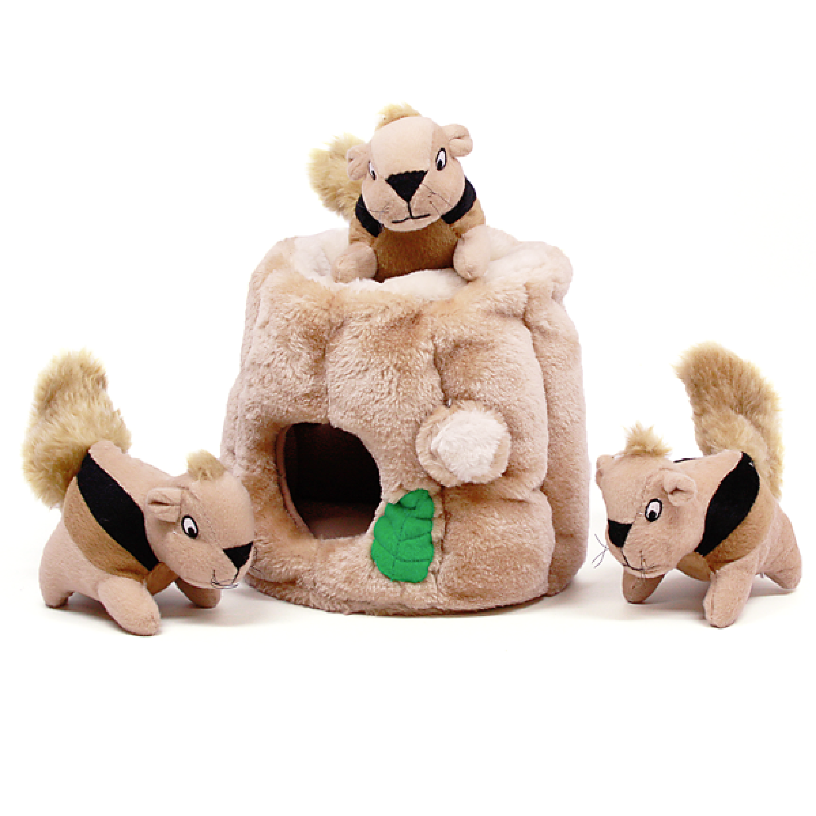 Když ti jeden plyšák nestačí, chtěj rovnou celou bandu pískacích veverek, které budeš hledat v pařezu. Plyšové puzzle Veverky v pařezu obsahují plyšový kmen stromu s několika otvory a se třemi pískacími veverkami.