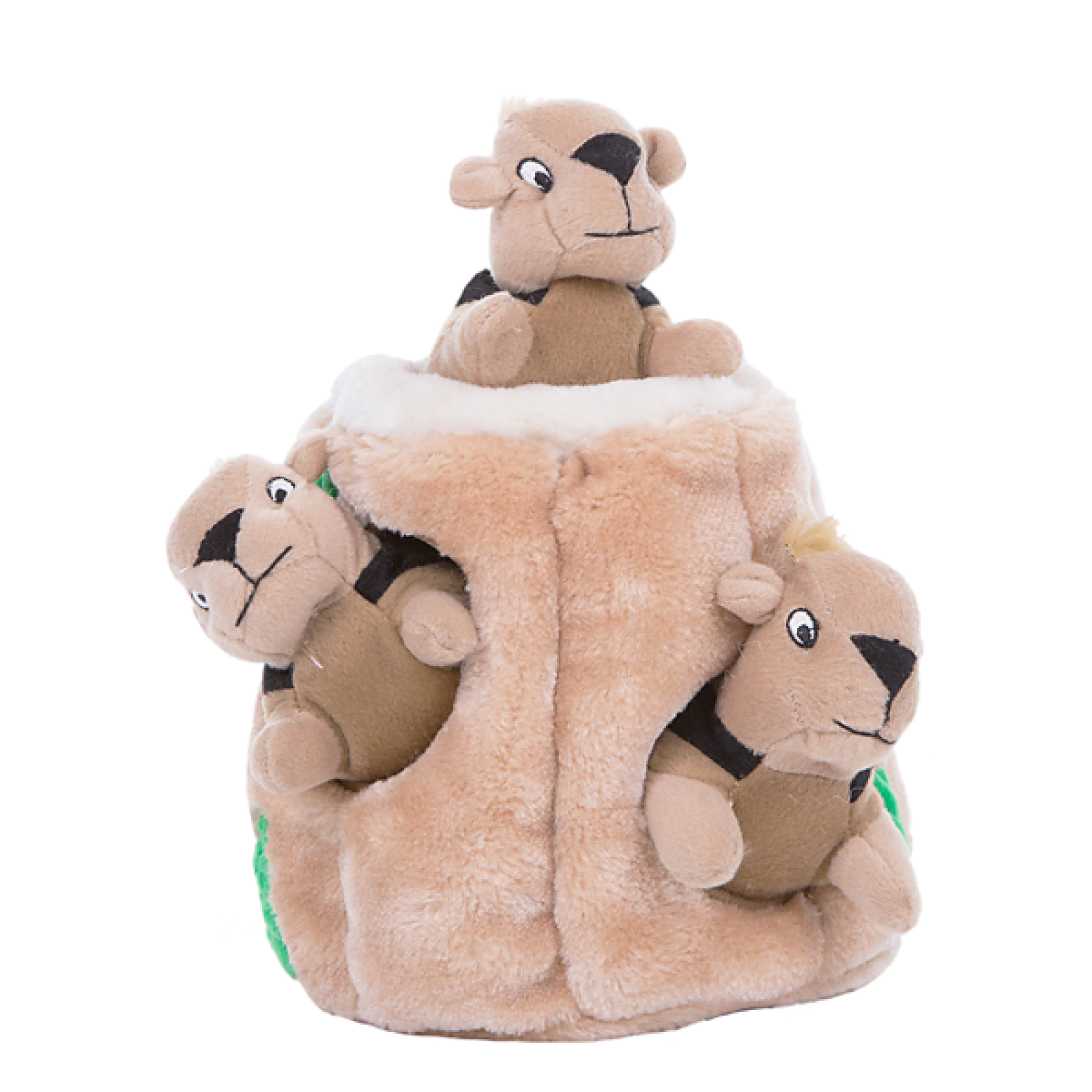 Když ti jeden plyšák nestačí, chtěj rovnou celou bandu pískacích veverek, které budeš hledat v pařezu. Plyšové puzzle Veverky v pařezu obsahují plyšový kmen stromu s několika otvory a se třemi pískacími veverkami.