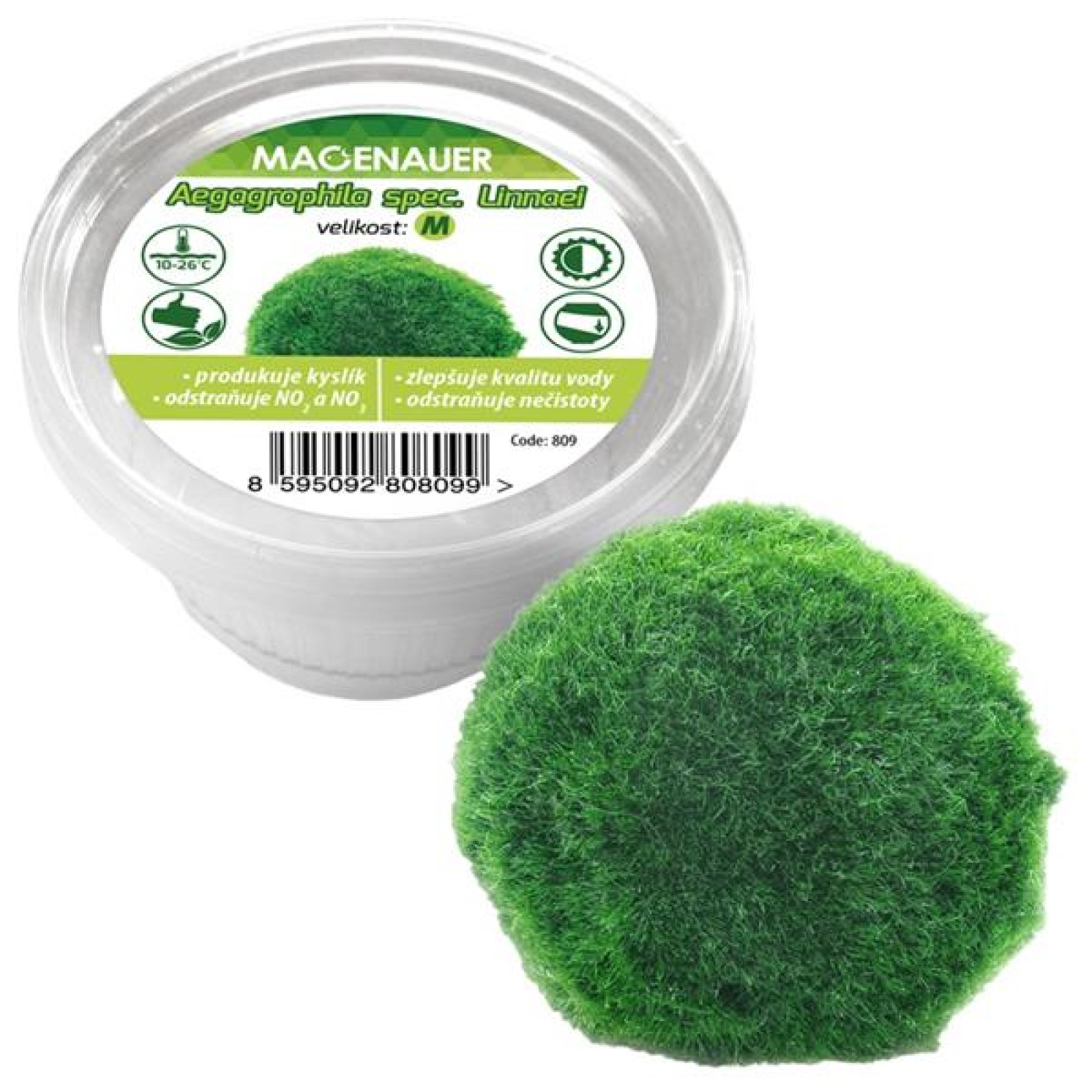 Rostlina živá řasokoule S 2-4cm Řasokoule zelená je nenáročná pomalu rostoucí vodní řasa (Aegagropila linnaei), která se přirozeně formuje do ...