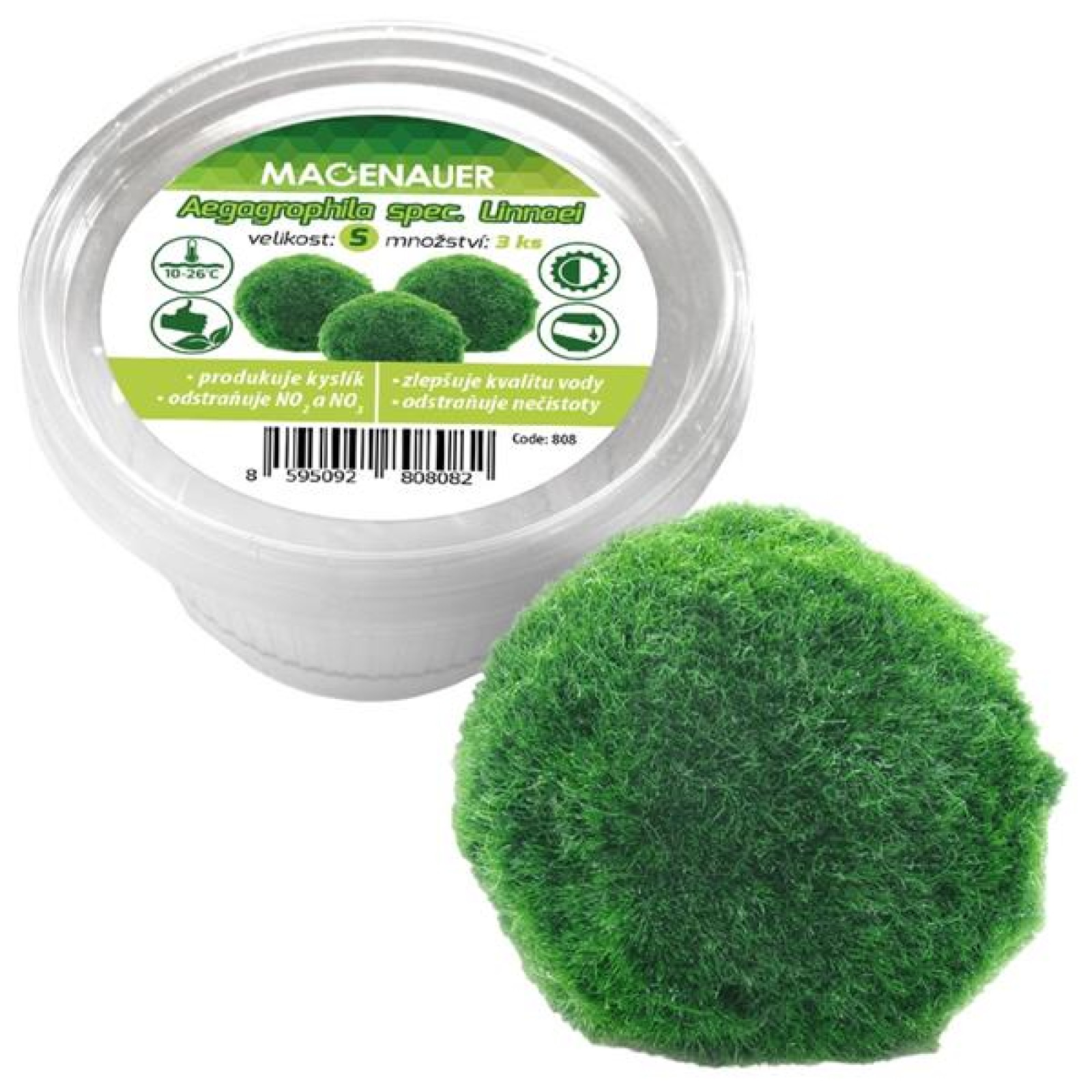 Rostlina živá řasokoule S 2-4cm Řasokoule zelená je nenáročná pomalu rostoucí vodní řasa (Aegagropila linnaei), která se přirozeně formuje do ...