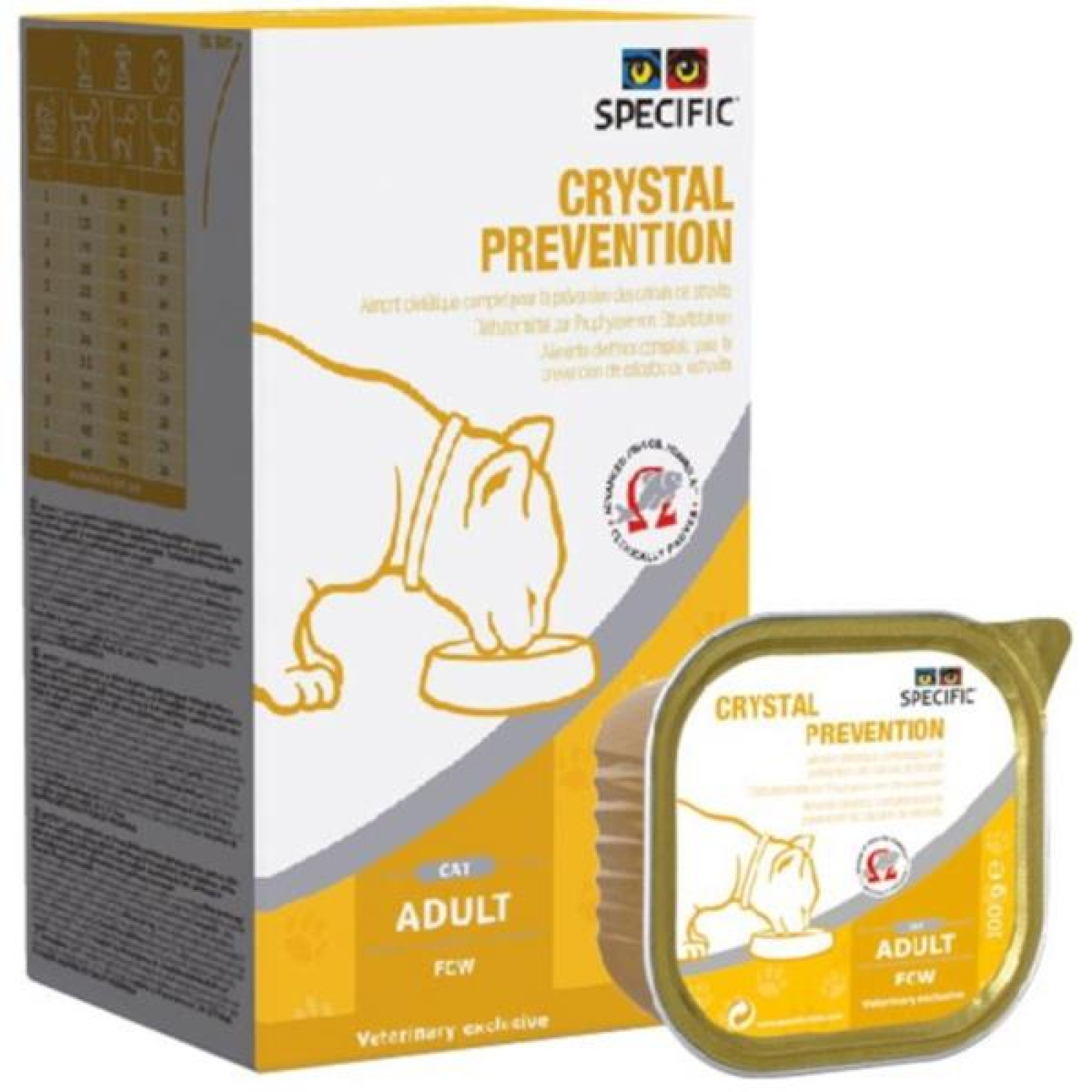 SPECIFIC® Crystal Management je kompletní dietní krmivo, které rozpouští struvitové močové kameny a snižuje riziko recidivy vzniku struvitových kamenů a onemocnění dolních cest močových u koček. Dietní krmivo díky svým vlastnostem okyseluje moč a snižuje nasycenost moči, čímž brání tvorbě struvitových krystalů. Toto krmivo pokrývá všechny požadavky na výživu dospělých koček a přispívá k jejich zdraví.