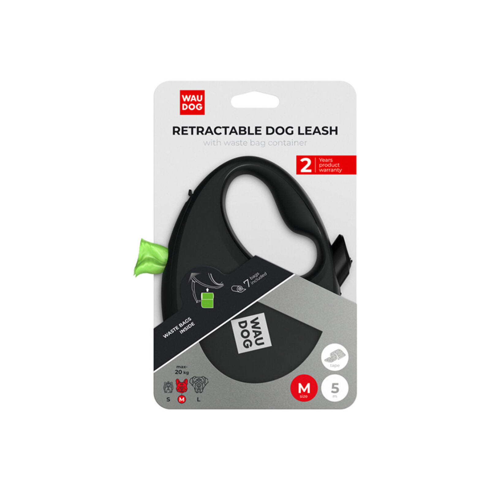 WAUDOG vodítko samonavíjecí se zásobníkem na sáčky Černé 20kg/5m/M