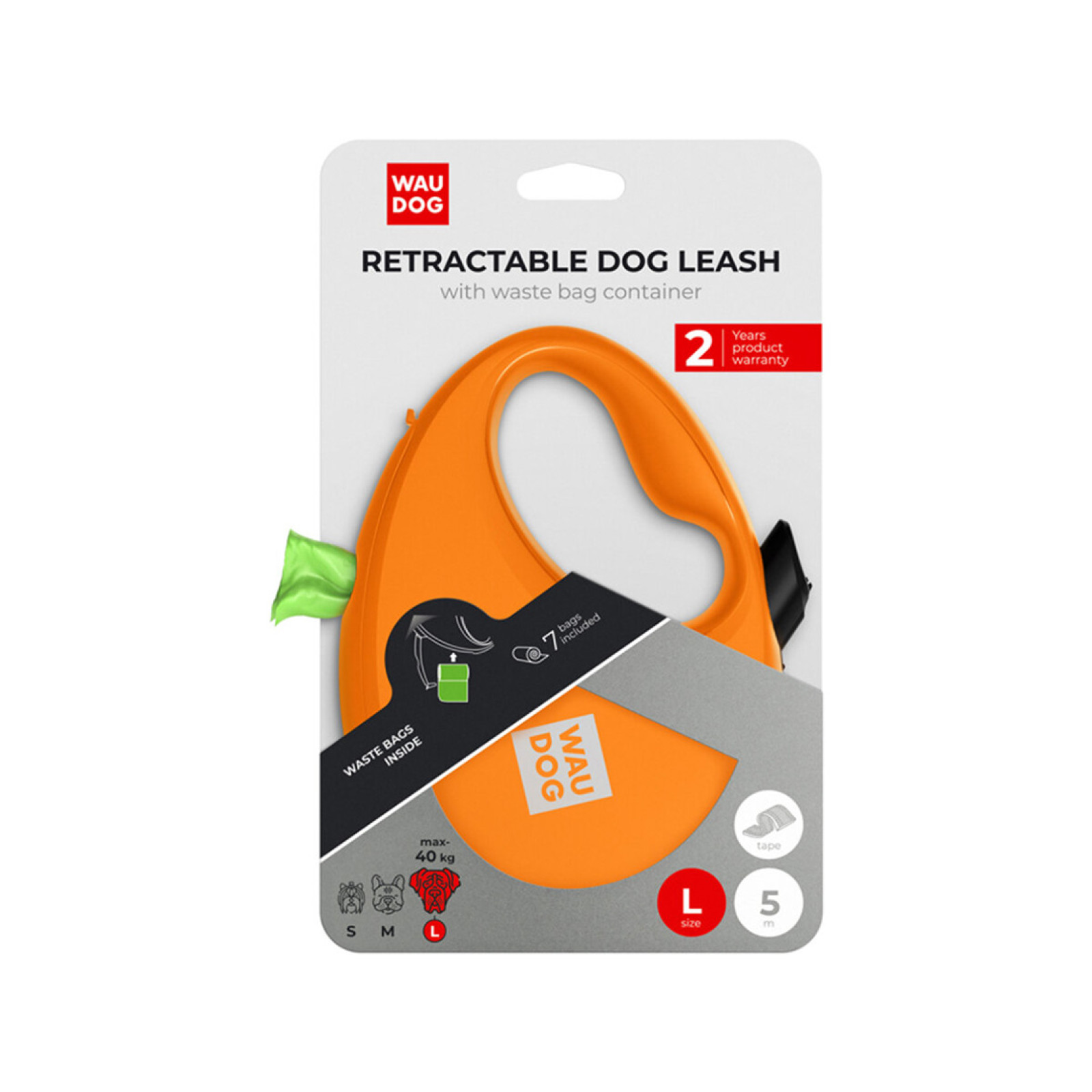WAUDOG vodítko samonavíjecí se zásobníkem na sáčky Oranžové 40kg/5m/L